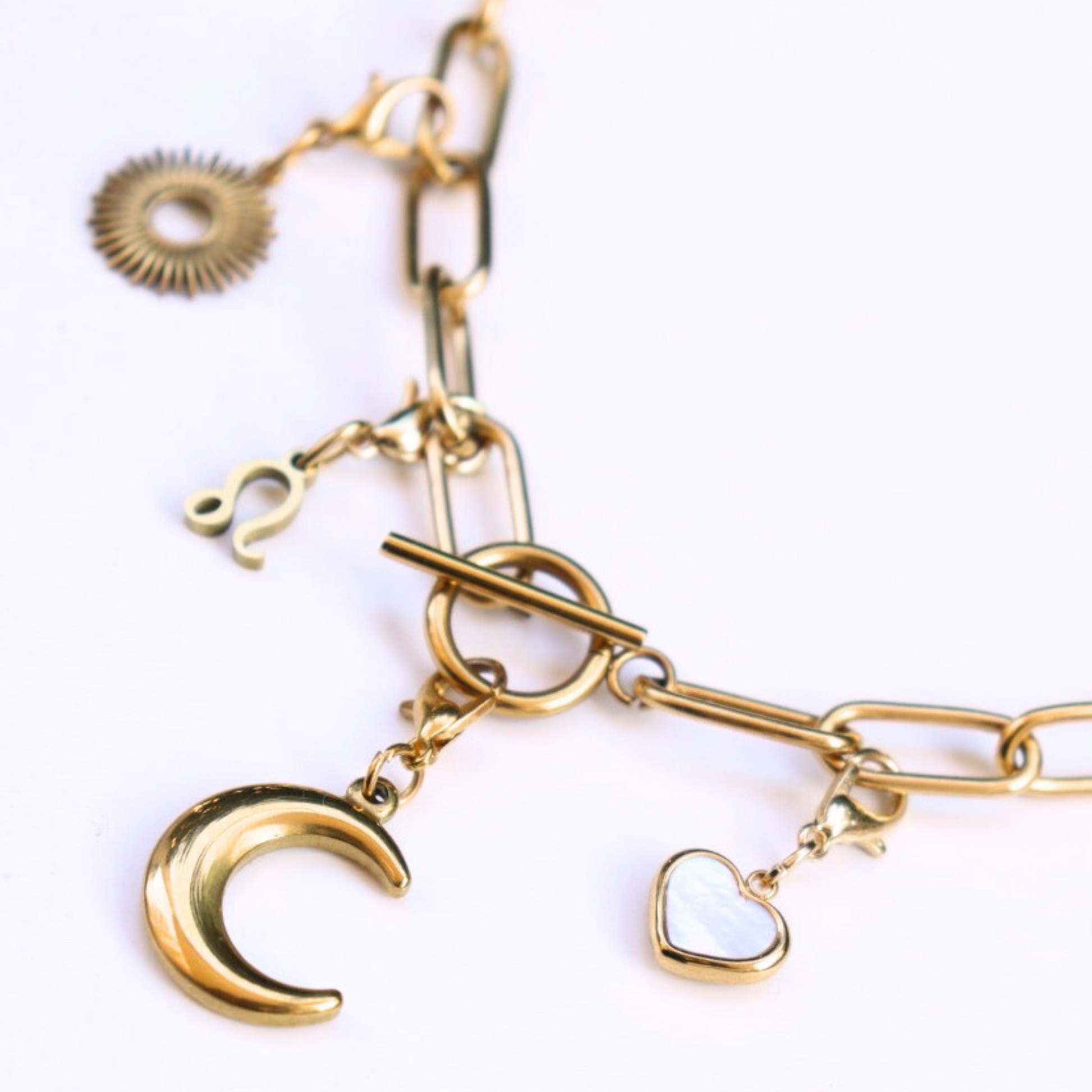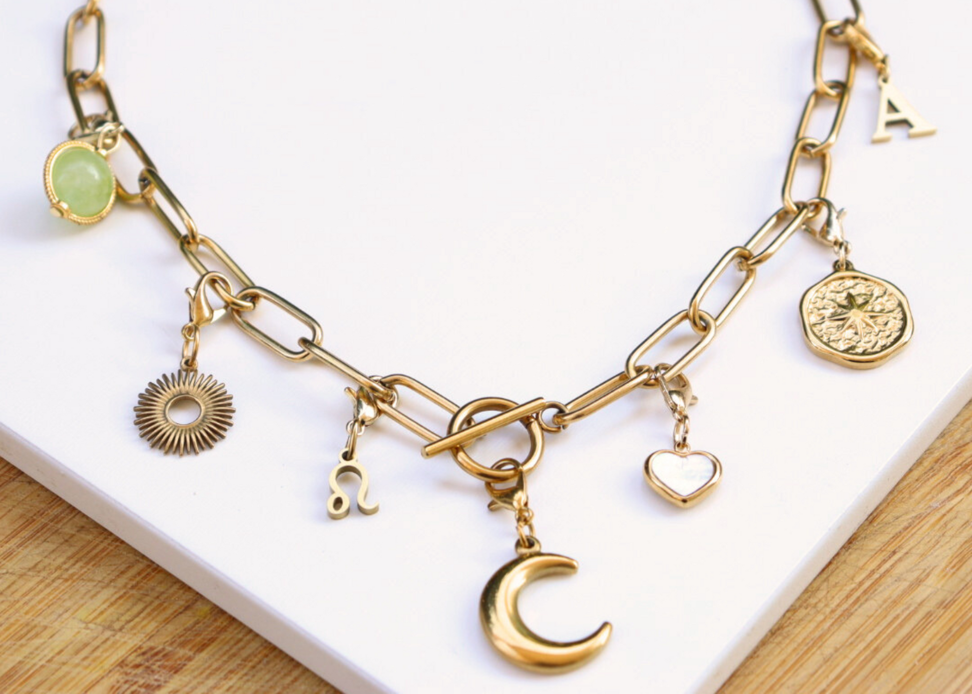 - Personnalisation complète : Sélectionnez vos charms préférés, qu’il s’agisse de lettres, signes astrologiques ou autres symboles, et créez un collier unique qui vous représente.